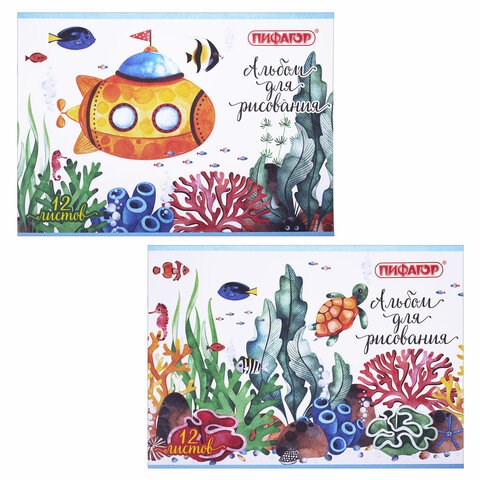 Альбом для рисования А4 12 л., скоба, обложка офсет, ПИФАГОР, 203х288 мм, "Океан" (2 вида), 106687
