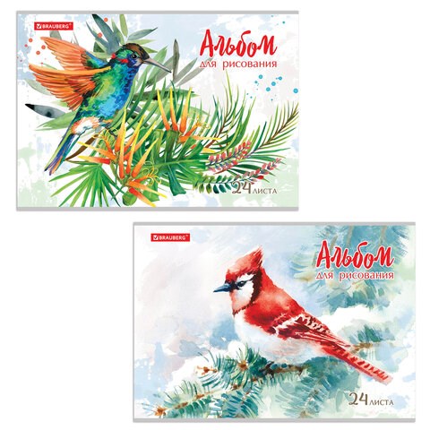 Альбом для рисования А4 24 л., скоба, обложка картон, BRAUBERG, 202х285 мм, "Райские птички" (2 вида), 105609