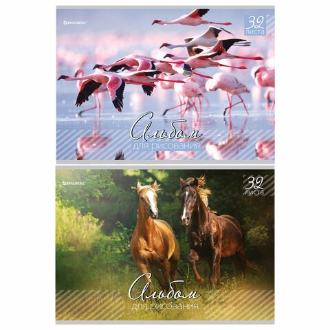 Альбом для рисования, А4, 32 листа, скоба, обложка картон, BRAUBERG, 200х283 мм, "Живая природа" (2 вида), 103683