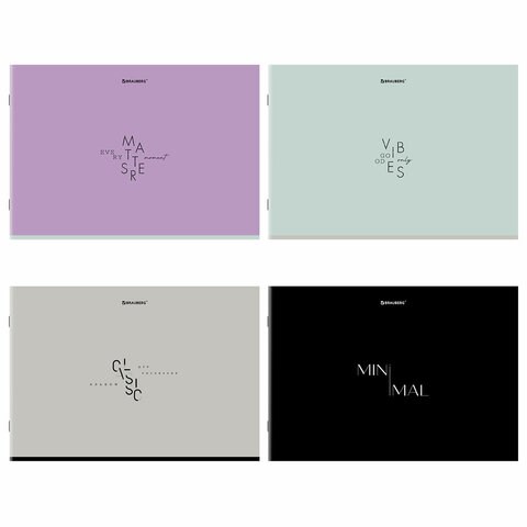 Альбом для рисования А4, 40 листов, скоба, обложка картон, BRAUBERG, 203х288 мм, "МИНИМАЛ" (4 вида), 107116