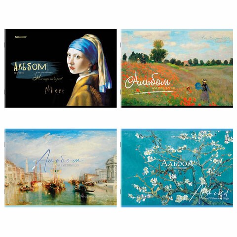 Альбом для рисования А4, 40 листов, скоба, обложка картон, BRAUBERG, 203х288 мм, "МИРОВЫЕ ШЕДЕВРЫ" (4 вида), 107117