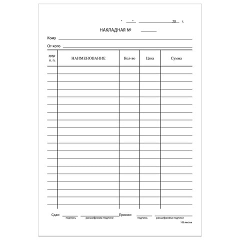Бланк бухгалтерский, офсет, "Накладная", А5 (135х195 мм), СПАЙКА 100 шт., STAFF, 130129
