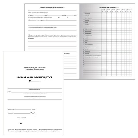 Бланк бухгалтерский офсет плотный, "Личная карточка обучающегося", А4 (200х275 мм), 2 л., STAFF, 130194