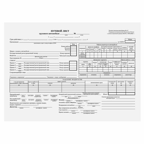 Вид бланкаПутевой лист грузового ав
