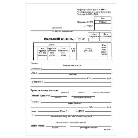 Бланк бухгалтерский, офсет, "Расходный кассовый ордер", А5 (135х195 мм), СПАЙКА 100 шт., STAFF, 130134