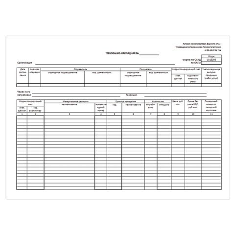 Бланк бухгалтерский, офсет, "Требование-накладная" (Форма М-11), А5 (154х216 мм), СПАЙКА 100 шт., 671120
