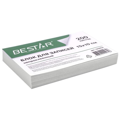 Блок для записей BESTAR непроклеенный, блок 15х10 см, 200 листов, белый, белизна 90-92%, 123004