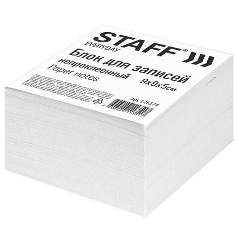 Блок для записей STAFF, непроклеенный, куб 9х9х5 см, белизна 70-80%, 126574
