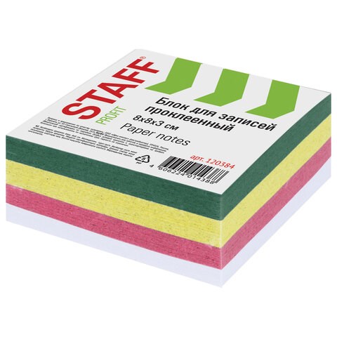 Блок для записей STAFF, проклеенный, куб 8х8 см, 350 листов, цветной, 120384