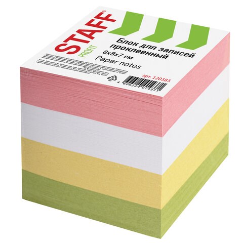 Блок для записей STAFF, проклеенный, куб 8х8 см, 800 листов, цветной, 120383