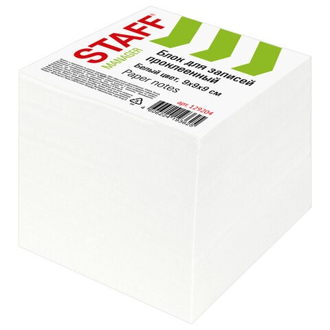 Блок для записей STAFF проклеенный, куб 9х9х9 см, белый, белизна 90-92%, 129204