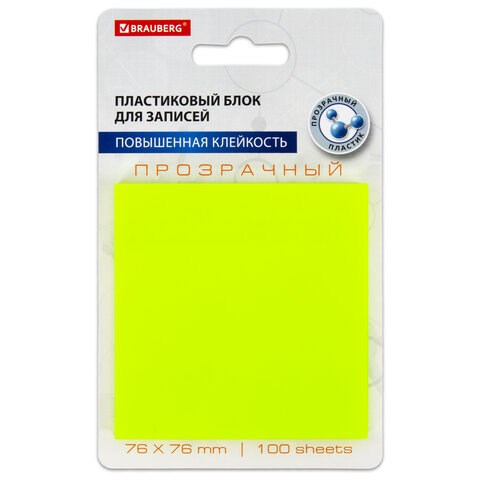 Блок самоклеящийся прозрачно-желтый (стикеры) BRAUBERG TRANSPARENT 76х76 мм, 100 листов, 115207