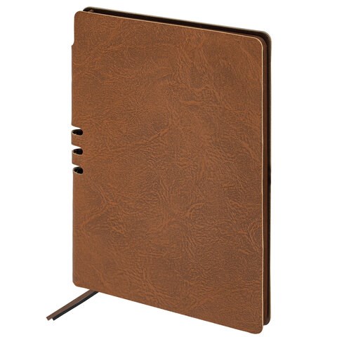 Блокнот А5 (140х200 мм), BRAUBERG "NEBRASKA", под кожу, 80 л., линия, коричневый, 113412