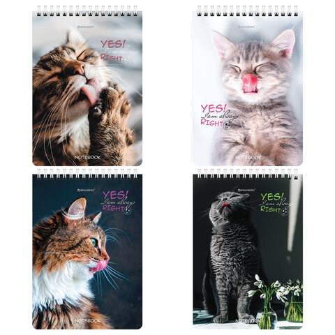 Блокнот А5 (146х206 мм), 80 л., гребень, картон, клетка, BRAUBERG, "Довольные коты", 114374