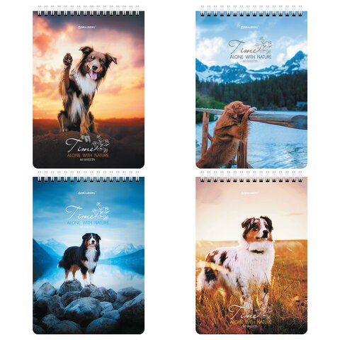 Блокнот А5 (146х206 мм), 80 л., гребень, картон, клетка, BRAUBERG, "Грациозные собаки", 114376
