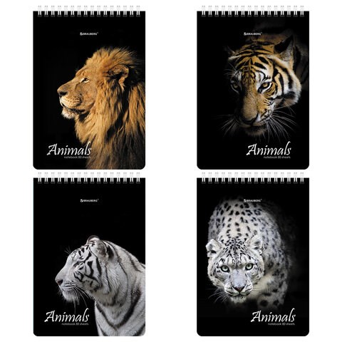 Блокнот А5 (146х206 мм), 80 л., гребень, картон, жесткая подложка, клетка, BRAUBERG, "Хищники", 114385