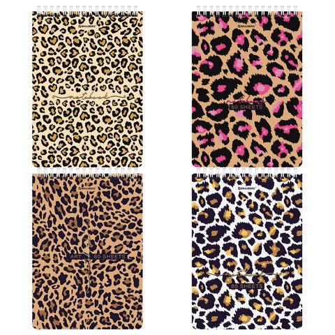 Блокнот А5 (146х206 мм), 80 л., гребень, картон, жесткая подложка, клетка, BRAUBERG, "Leopard", 114383