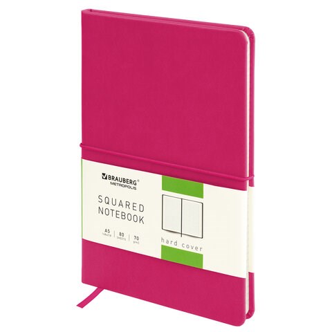 Блокнот А5 (148x218 мм), BRAUBERG "Metropolis X", под кожу, 80 л., резинка, клетка, малиновый, 111034