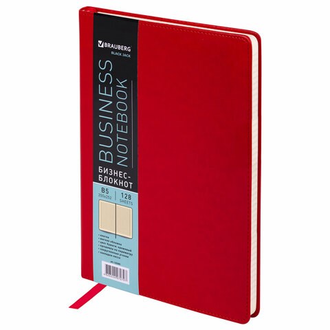 Блокнот БОЛЬШОЙ ФОРМАТ (200х252 мм) В5, BRAUBERG "Income", кожзам, 128 л., клетка, красный, 125205