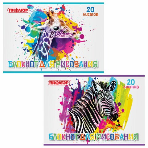 Блокнот для рисования, А4, 20 листов, скоба, обложка офсет, ПИФАГОР, 200х285 мм, "Саванна" (2 вида), 115245