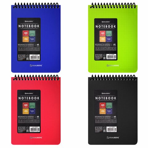 Блокнот МАЛОГО ФОРМАТА А6, 60 л., обложка пластик, клетка, BRAUBERG "Metropolis", АССОРТИ, 115578