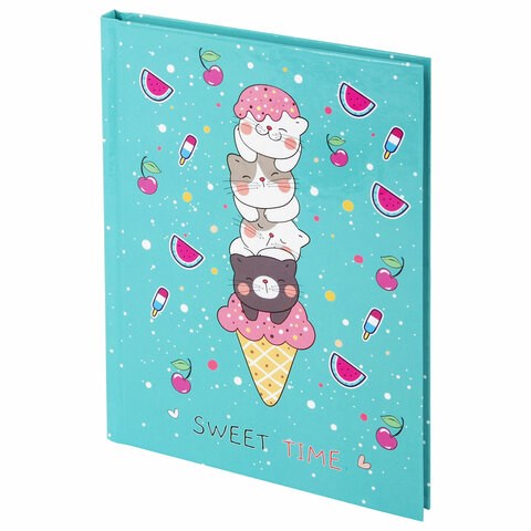 Блокнот МАЛЫЙ ФОРМАТ (110х147 мм), А6, 80 л., твёрдый, клетка, BRAUBERG KIDS, "Котики", 114443