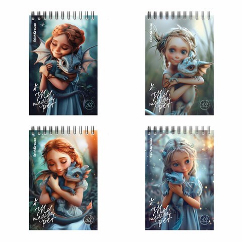 Блокнот МАЛЫЙ ФОРМАТ А6, 100х146 мм, 60 л., спираль, картон, клетка, ERICH KRAUSE, "Magic Pet", 63380