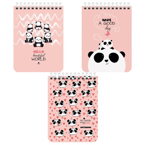 Блокнот МАЛЫЙ ФОРМАТ А6 108х145 мм, 40 л., гребень, картон, клетка, BRAUBERG KIDS, "Панды", 114393