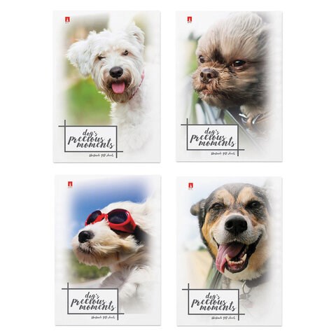 Блокнот МАЛЫЙ ФОРМАТ А7, 40 л., скоба, ламинированный картон, клетка, Альт, "Щеночки" (4 вида), 3-40-107