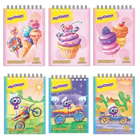 Блокнот МАЛЫЙ ФОРМАТ А7 75х105 мм, 40 л., гребень, картон, клетка, ЮНЛАНДИЯ, "Юнландик" / "Сладости", 129858
