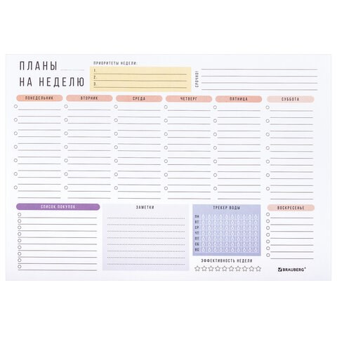 Стильный и универсальный блокнот-планер BRAUBERG с отрывными листами станет незаменимым помощником в планировании своей недели.