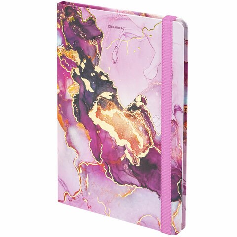 Блокнот с резинкой в клетку 96 л., А5 (145х203 мм), твердая обложка с фольгой, BRAUBERG, "Мрамор", 113731