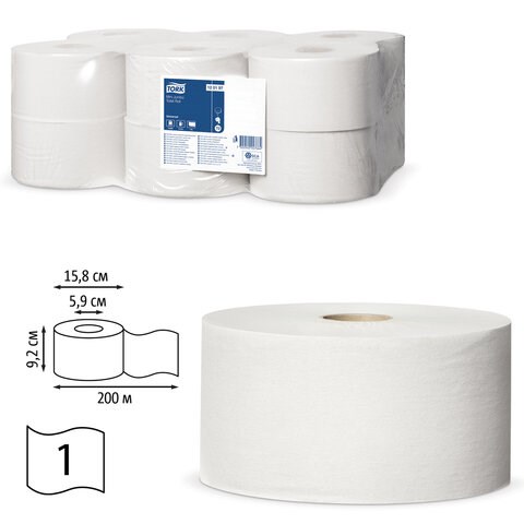 Бумага туалетная 200 метров, TORK (Система T2) UNIVERSAL, 1-слойная, КОМПЛЕКТ 12 рулонов, 120197