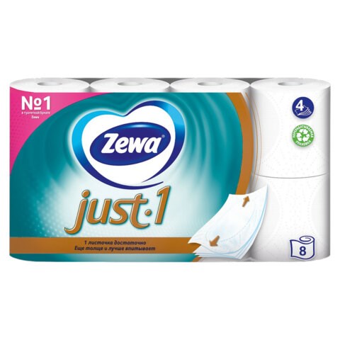 ZEWA Just 1 дарит ощущение безупречной чистоты: каждый листочек на 20% больше и 50% толще, поэтому впитывает в 2 раза лучше, чем обычная туалетная бумага.
