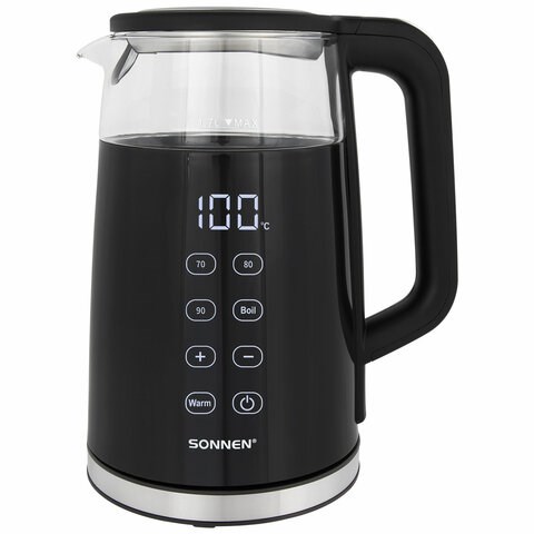 Чайник с терморегулятором и дисплеем, ДВОЙНЫЕ СТЕНКИ, SONNEN KT-8717, 1,7 л, 2200 Вт, черный, 454687