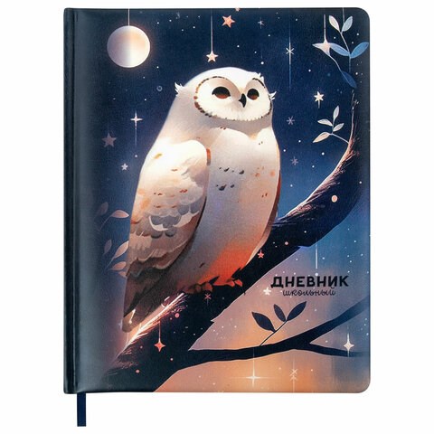 Дневник 1-11 класс 48 л., кожзам (твердая с поролоном), печать, наклейки, BRAUBERG, "Сова", 106947