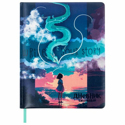 Дневник 1-11 класс 48 л., кожзам (твердая с поролоном), печать, цветной блок, BRAUBERG, "Аниме", 106951