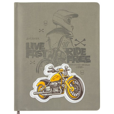 Дневник 1-11 класс 48 л., кожзам (твердая с поролоном), тиснение аппликация, BRAUBERG, "МОТО", 105976