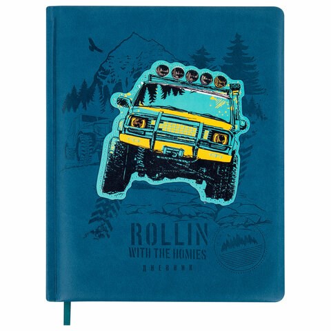 Дневник 1-11 класс 48 л., кожзам (твердая с поролоном), тиснение, аппликация, BRAUBERG, "Внедорожник", 106939