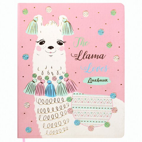 Дневник 1-4 класс 48 л., кожзам (гибкая), печать, фольга, ЮНЛАНДИЯ, "ЛАМА", 105931