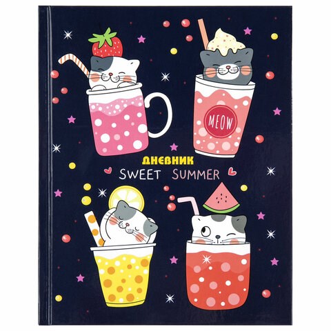 Дневник 1-4 класс 48 л., твердый, ЮНЛАНДИЯ, глянцевая ламинация, с подсказом, "Котики", 106352