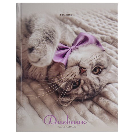 Дневник 5-11 класс 48 л., твердый, BRAUBERG, глянцевая ламинация, с подсказом, "Котик", 107188