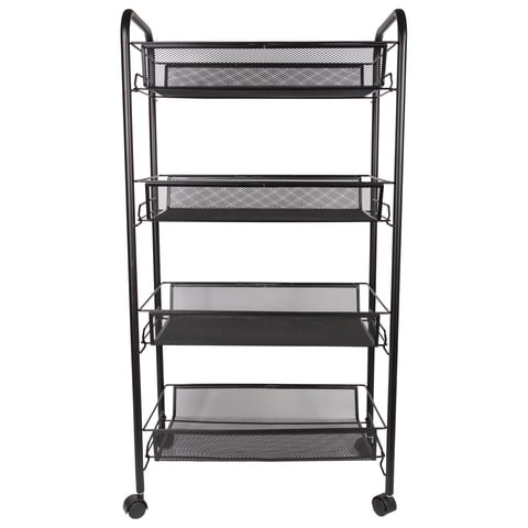 Этажерка (тележка) BRABIX офисно-бытовая 4 яруса, на колесах, металл, черная, 43,5х26х83,5 см, 603753