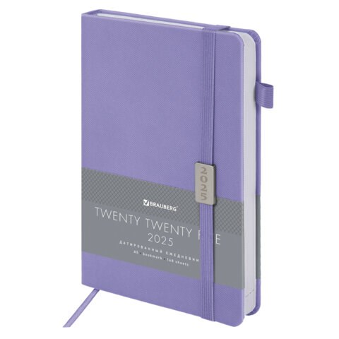 Ежедневник датированный 2025, А5, 138x213 мм, BRAUBERG "Control", под кожу, держатель для ручки, сиреневый, 115850