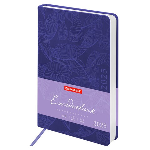Ежедневник датированный 2025, А5, 138x213 мм, BRAUBERG "Foliage", под кожу гибкий, сиреневый, 115855