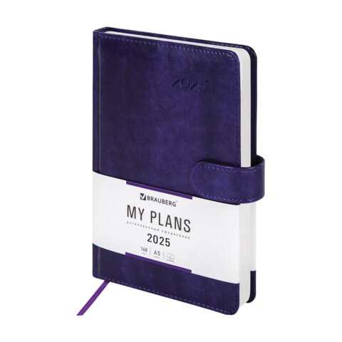 Ежедневник датированный 2025, А5, 138x213 мм, BRAUBERG "Legend", под кожу, застежка, фиолетовый, 115795