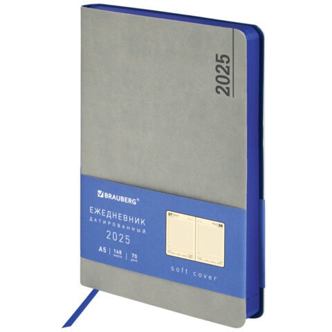 Ежедневник датированный 2025, А5, 138x213 мм, BRAUBERG "Metropolis Mix", под кожу гибкий, серый, 115862