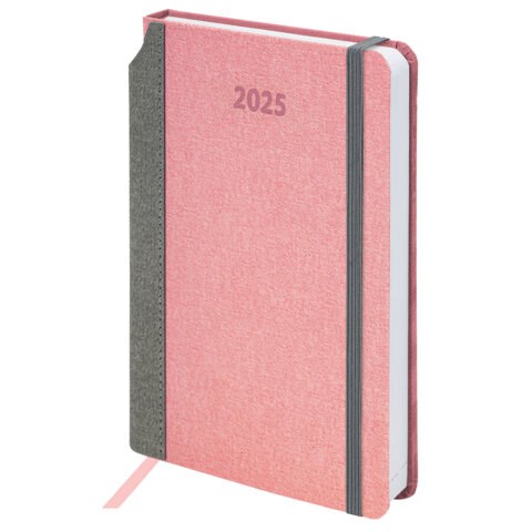 Ежедневник датированный 2025 А5 138x213 мм, BRAUBERG "Mosaic", под кожу, карман для ручки, резинка-фиксатор, розовый, 115839