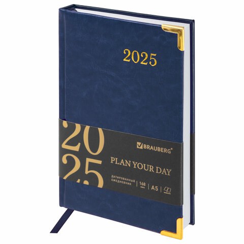 Ежедневник датированный 2025 А5 138x213 мм BRAUBERG "Senator", под кожу, синий, 115815