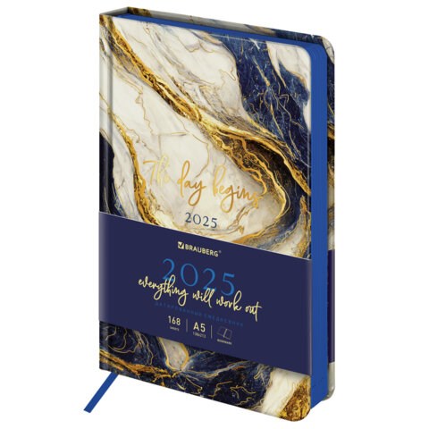 Ежедневник датированный 2025 А5 138x213 мм BRAUBERG "Vista", под кожу твердый, "Blue Marble", 115871